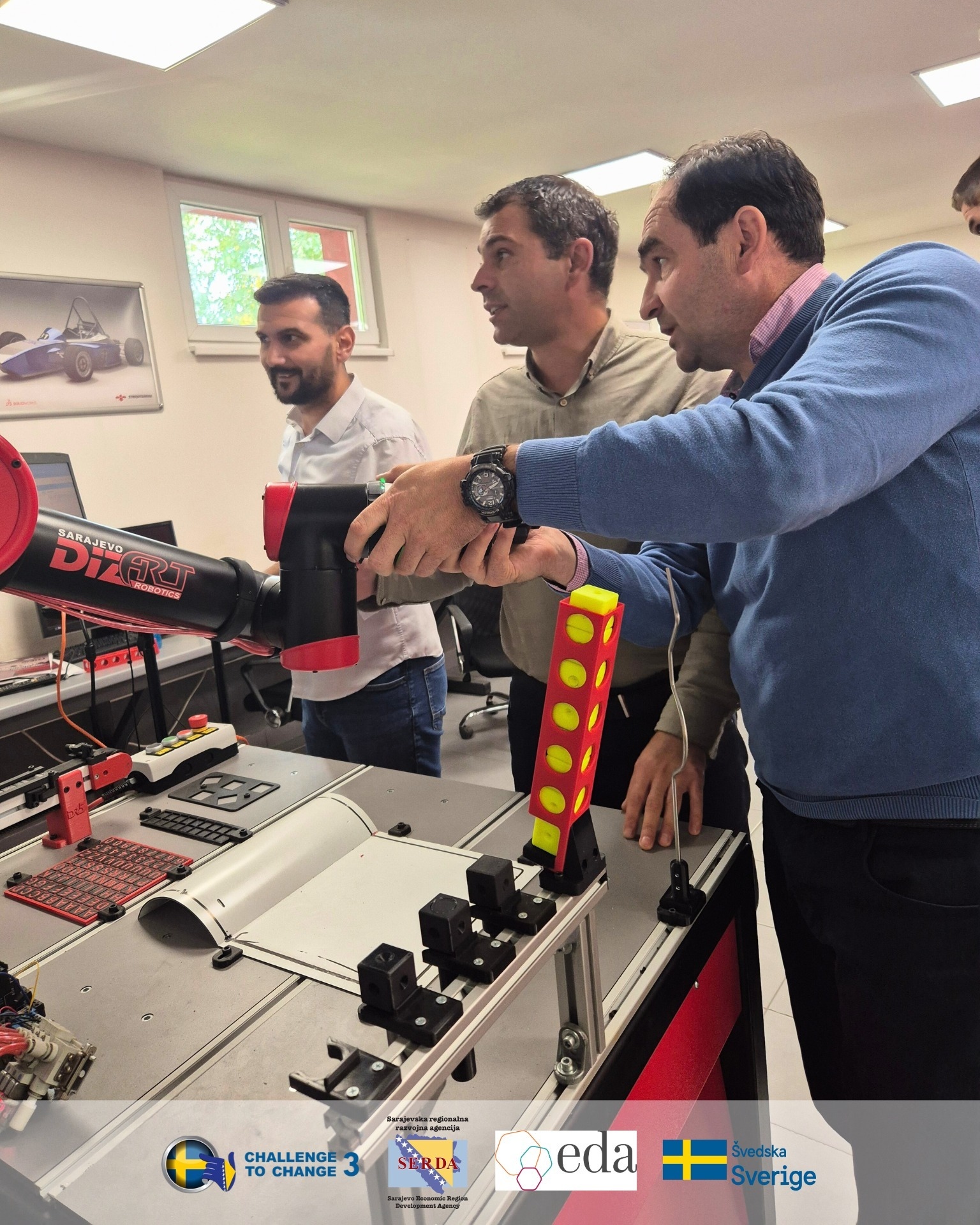 Realizacija projekta donijela je konkretne i vidljive rezultate. Nabavljena su tri kolaborativna robota sa kompletnom opremom, a Dizartov tim razvio je tri potpuno funkcionalne edukacijske ćelije koje omogućavaju realnu praktičnu obuku na modernoj industrijskoj tehnologiji. Tokom mjesec dana intenzivne edukacije, šest profesora iz Kantona Sarajevo prošlo je certificiranu obuku na novim edukacijskim ćelijama. Projekat je pratila i široka medijska promocija, uključujući TV prilog i komunikaciju na društvenim mrežama. Dodatno, tim je proširen zapošljavanjem jednog novog radnika, koji aktivno učestvuje u razvoju novih rješenja.